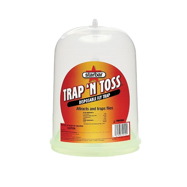 This handy, disposable fly trap complete with its own attractant, holds thousands of flies. Trap 'N Toss™ disposable fly trap can be hung up or set on the ground wherever flies are a problem. When it fills up with flies, just toss it out.
