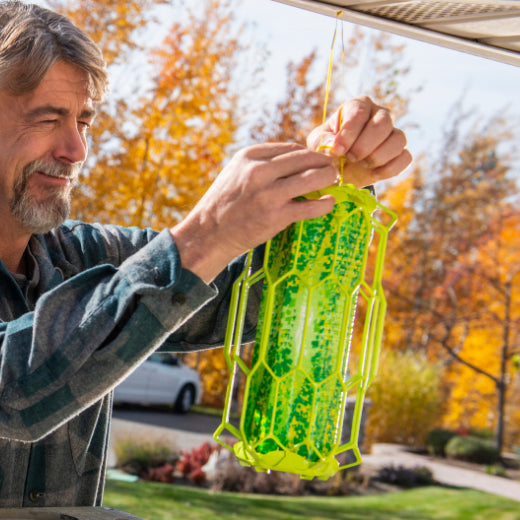 This TrapStik® catches paper wasps, mud daubers and carpenter bees. Redesigned to include bird guards and spikes on the top and bottom caps, the trap keeps wildlife safe while continuing to catch the target insects.