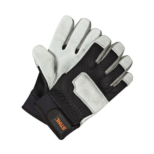 • STIHL value work gloves strike a balance between affordability and durability, featuring strong cowhide leather and a flexible mesh backing