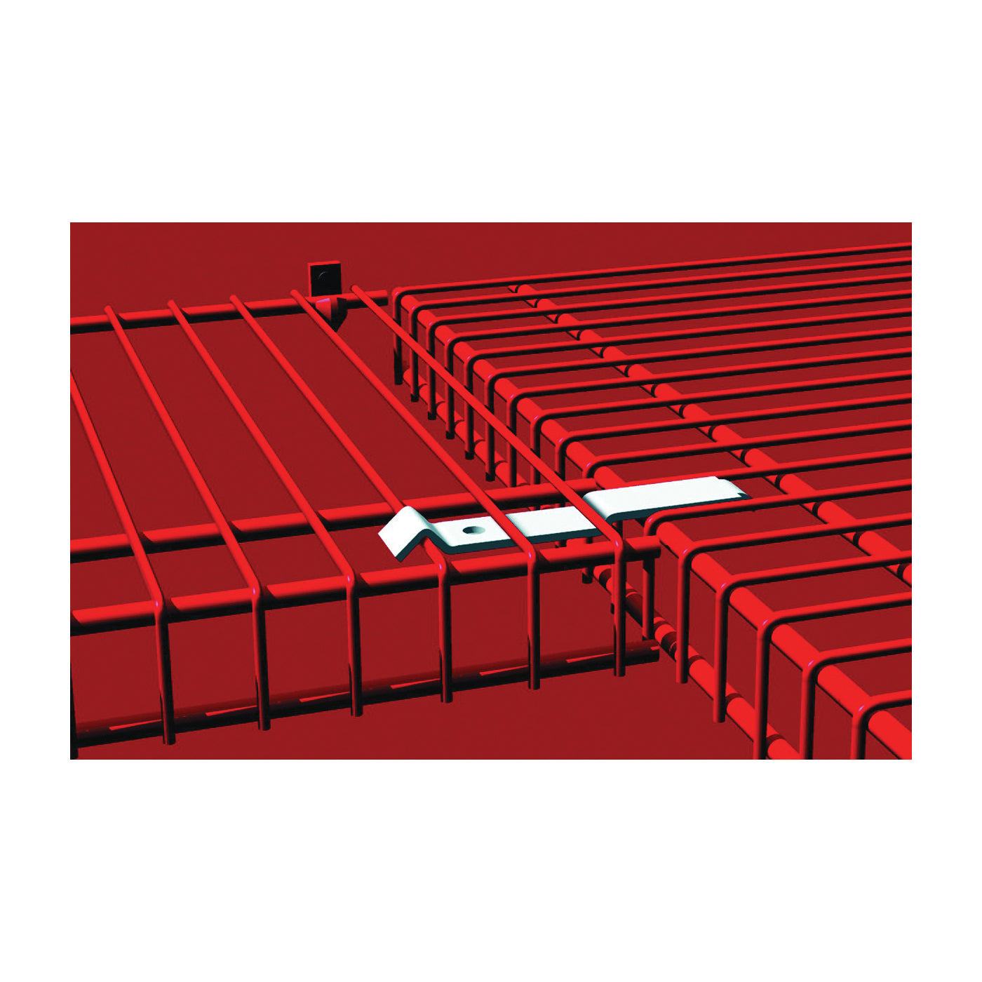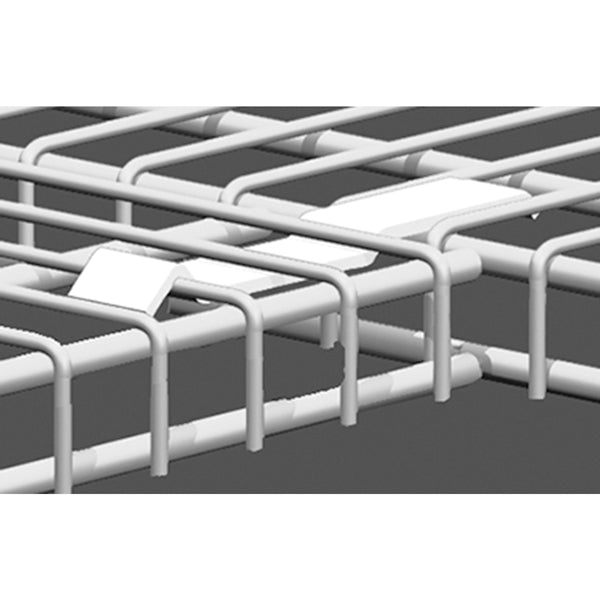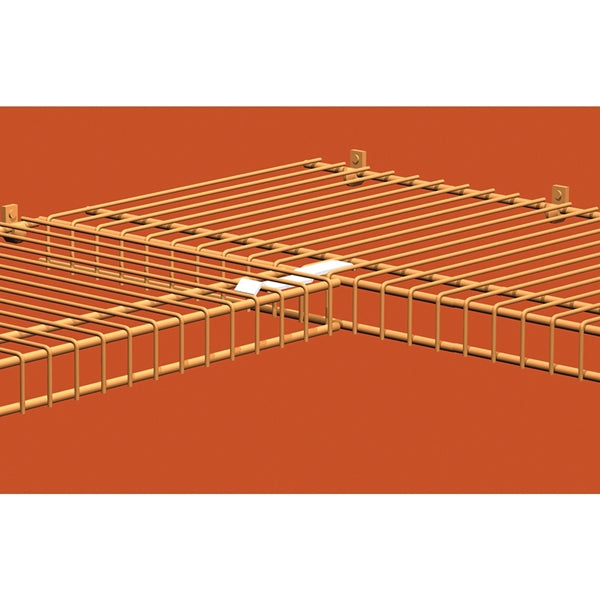 Supports front lip of shelving to keep it level where it meets another shelf in a corner. Snap-in place design. For corner installations. Measures 3/8 in H x 5 in W x 3/4 in D. Steel construction with epoxy-coated finish.