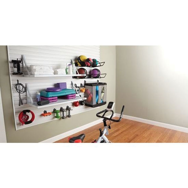 Shovels, long handled garden tools and other gear are neatly organized and off the floor with the GLADIATOR® twin hook. This hook can hold up to 25 lb and is easily relocated onto different GLADIATOR® wall systems. Vinyl tip padding prevents your items from being scratched or dented while lock tabs keep this hook secured to the wall.