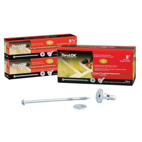 The ThruLOK® system can be used for applications including multi-ply beams, deck posts, carrying beams and more. It combines the strength of a through bolted connection with the speed of a LOK fastener with no pre-drilling required. ThruLOKs replace traditional carriage and through bolts in applications ranging from 4-1/2 to 8-1/2 in. Its three-part assembly includes a screw, featuring the patent pending Paddle Point™, engineered washer and LOK-Nut.