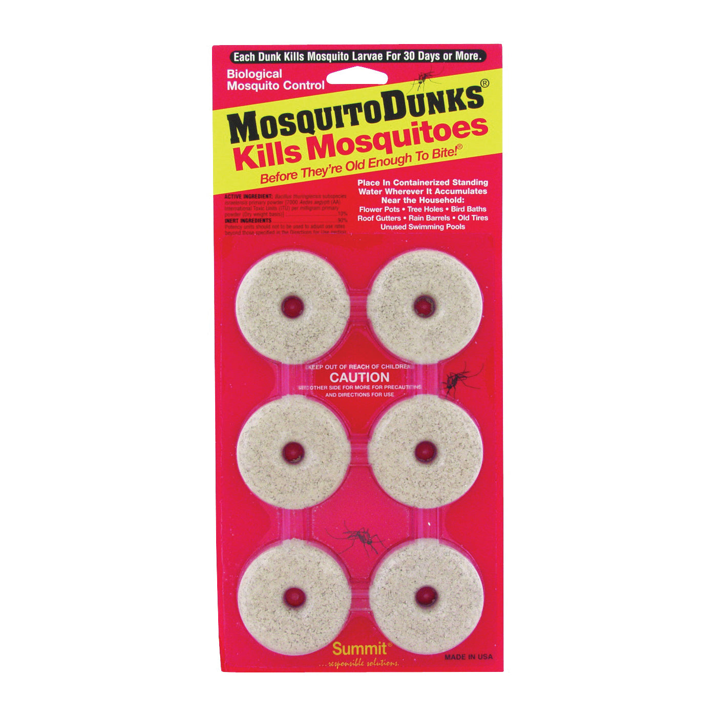 Kills Mosquitoes before they're old enough to Bite!® The Mosquito Dunks® are America's excellent selling home owner mosquito control product. The only product with BTI, a bacteria toxic only to mosquito larvae, that lasts 30 days and treats 100 sq-ft of surface water.