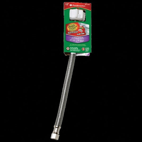 Polymer core covered with braided stainless steel wire. 7/8 in female ballcock x 3/8 in female comp.