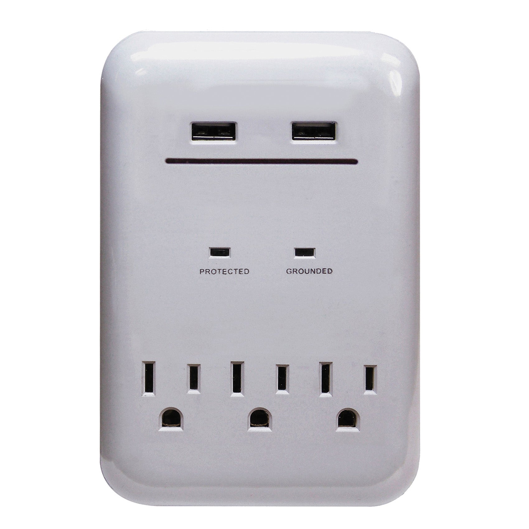PowerZone cell phone charger stand slot on top helps keep your desk clean. The multi-functional electrical 3-outlet wall adapter with 2 smart USB charging ports allows you to power up multiple electric devices simultaneously.