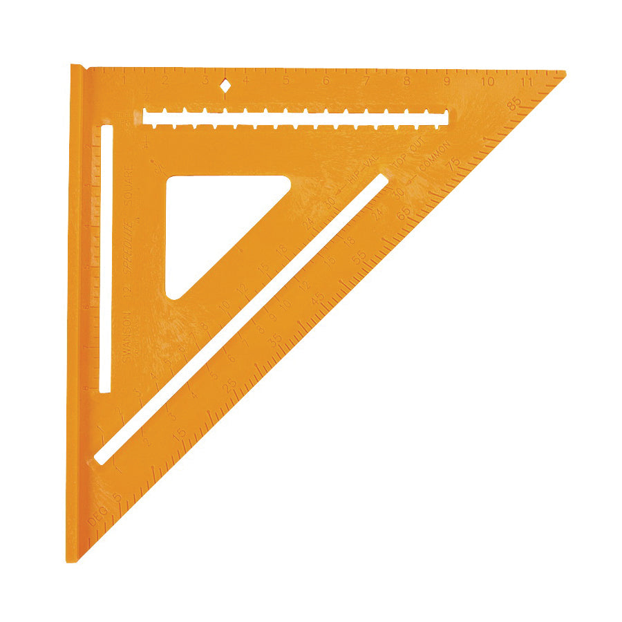 The orange Big 12® Speedlite® square has the same basic features as the aluminum Big 12® Speed® square, but it is constructed of lightweight high-impact structural composite. The weight savings alone is great, but this tool is also ideal for use with siding and other delicate materials, since it will not mar softer finishes.