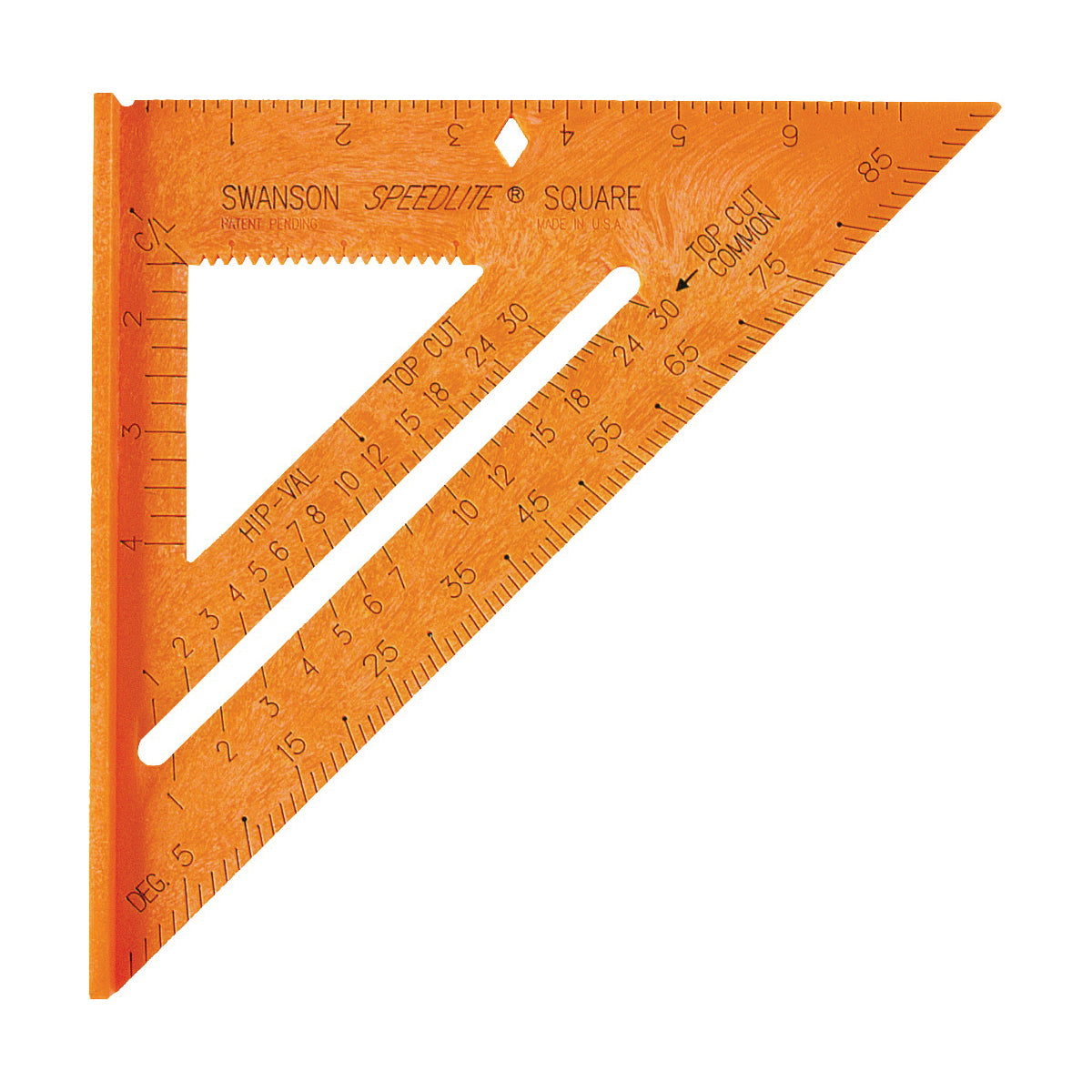 The 8 in Speedlite® square is formed from lightweight, high-impact structural composite and is available in matte gray, high-visibility yellow and high-visibility orange. It's basically the same as the one and only Speed® square but is also great for use with siding and other delicate materials, since it won't mar soft finishes. Plus, its 8 in size means it's ideal for marking cuts in 8 in siding. Look for the Diamond®.