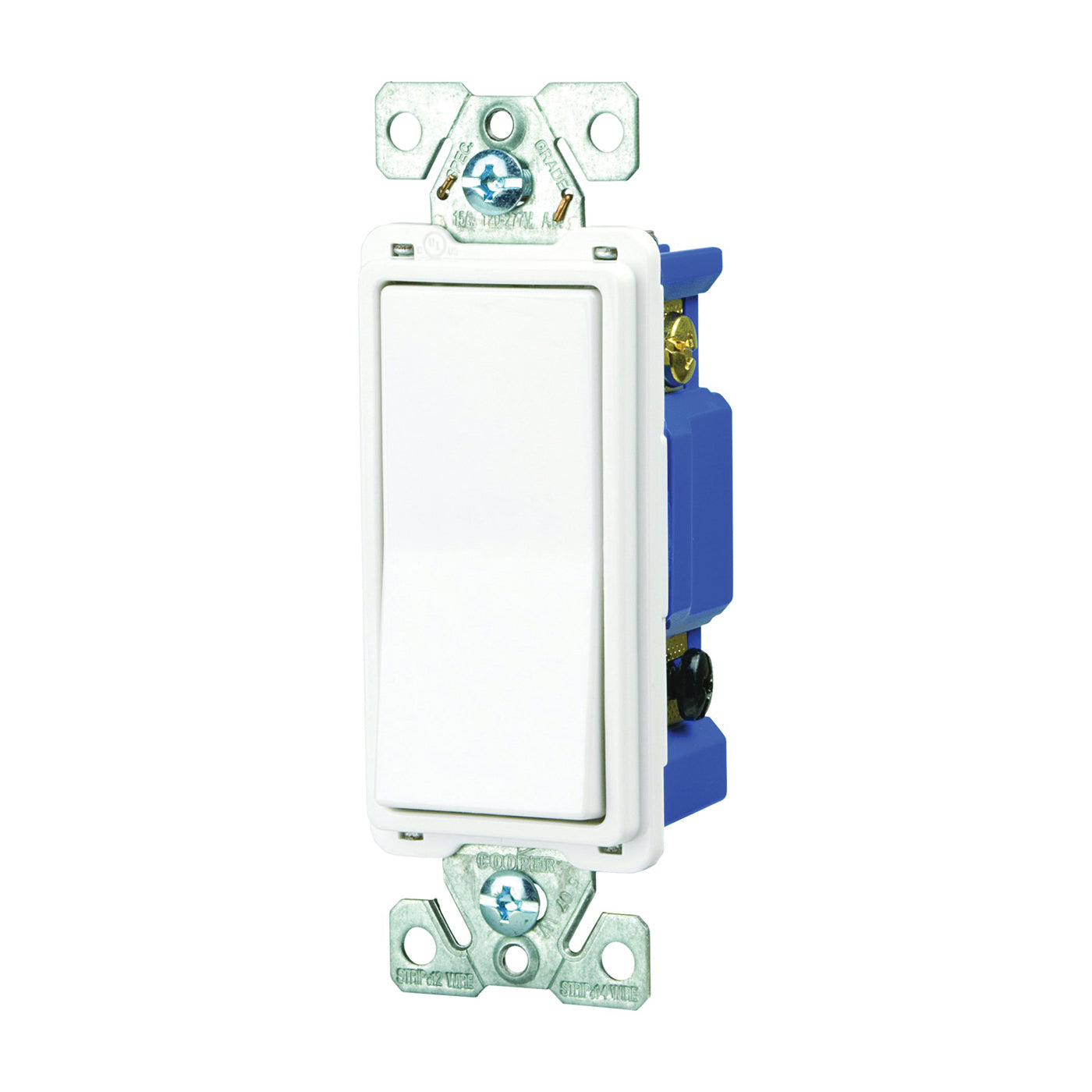 • Eaton Wiring Devices 7500 7504W-BOX Rocker Switch, 15 A, 120/277 V, 4-Way, Lead Wire Terminal, White