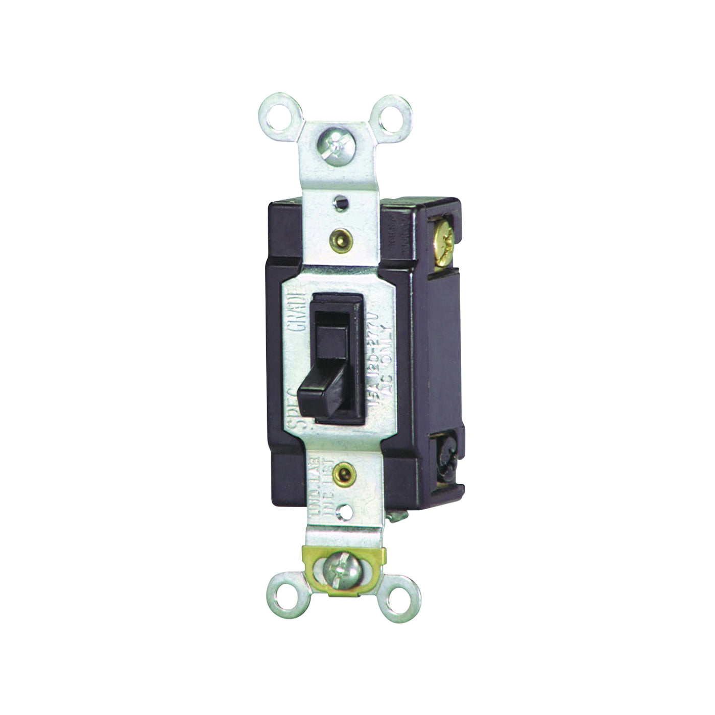 Longer, wider strap on toggle switches provides 40% more contact area to wall board. Virtually eliminates floating installations. Industrial design cam action mechanism insures quiet switch action. Patented built-in wire stripper for #14 and #12 wire to speed installation. Unbreakable top and bottom housing eliminates call backs due to job site breakage. Patented built-in wire looper for pre-looping. Three-way switches feature additional push-in common termination for feed-through tapping. Push-in terminals accept #14 solid wire only. Side wire terminals accept up to #10 solid or stranded wire.