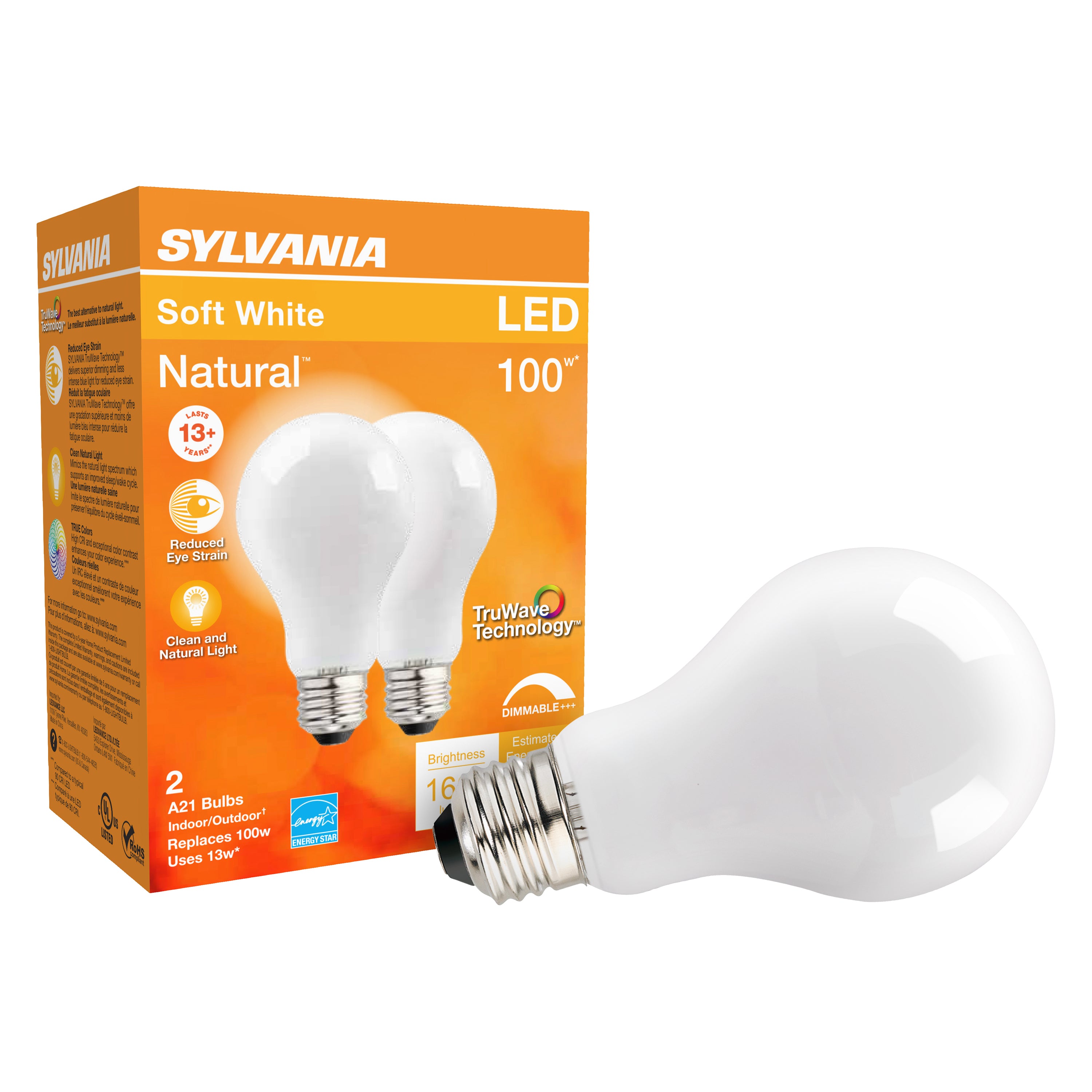 Sylvania Natural LED Bulb, General Purpose, Wattage Rating: 13 W, 120 V, Lamp Base: E26, Lamp Shape: A21, Lamp Finish: Frosted, Lumens: 1600 Lumens, Dimmable: Dimmable, Light Color: Soft White, Average Life: 15,000 hr, Incandescent Equivalent: 100 W