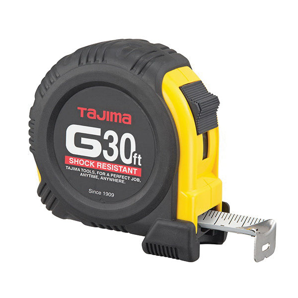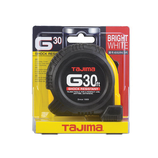 Tajima G Tape Measure, 30 ft L Blade, 1 in W Blade, Steel Blade, Case Material: ABS, Case Finish: Elastomer, Standout: 7-3/4 ft, End Type: Hook
