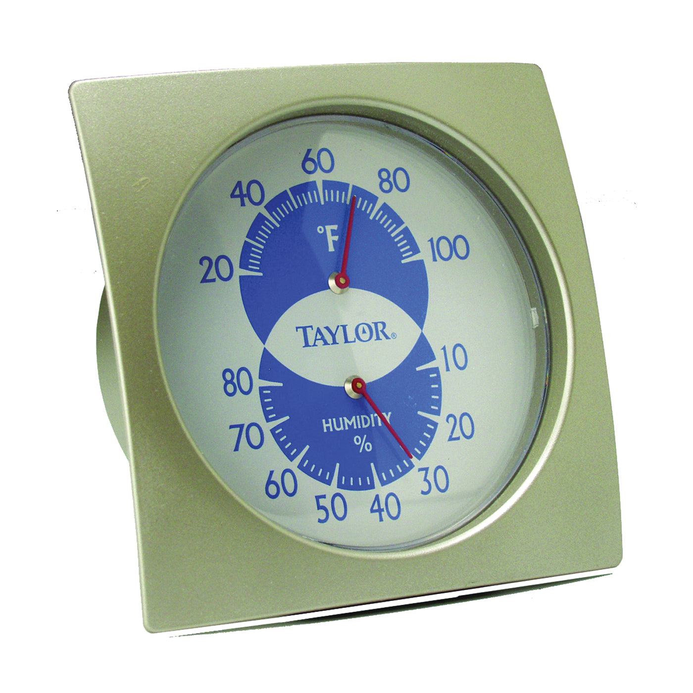 Displays relative humidity and temperature. Hangs or stands. Updated contemporary styling. For any room in the home. Accurate from 20 to 120 deg F and 10 to 80% humidity.