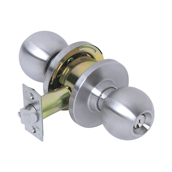 Heavy-duty cylindrical knob sets, designed for use in high traffic areas such as office building, schools, churches, restaurants, retail stores and warehouses, complies with ANSI A156.2, Grade 2 (400, 000) cycles, UL listed for 3 hr fire door. Door range of 1-3/8 to 1-3/4 in. Backset of 2-3/4 in standard. Commercial and Residential. Indoor and Outdoor. Fits standard 161 door prep, Schlage C keyway, keyed different, includes two nickel silver keys.