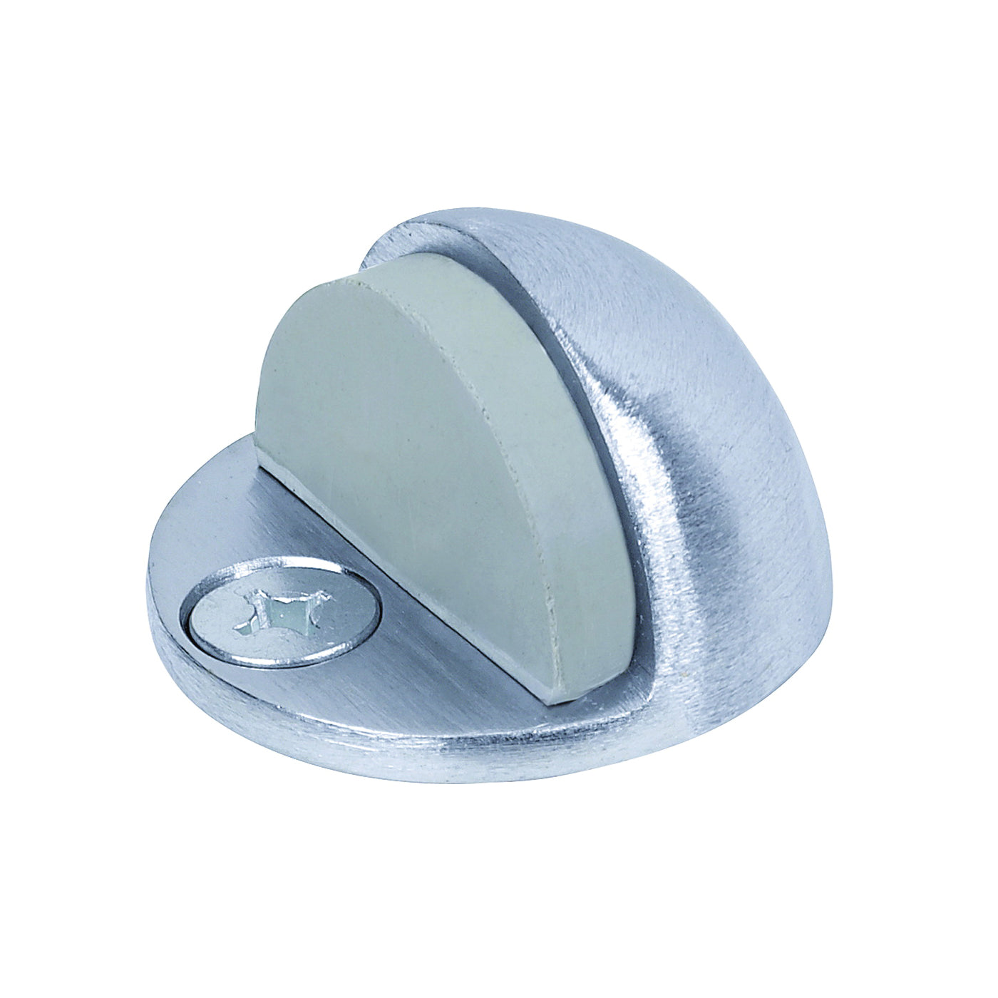 Tell Manufacturing Door Stop, Base Diameter: 1-3/4 in, 2 in L, 2 in W, 2 in H, Brass, Gray/Silver, Satin Chrome, Floor Mounting