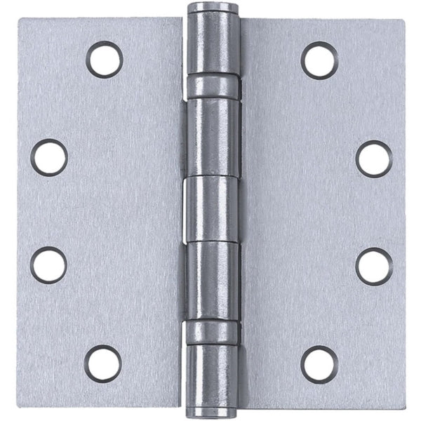 Tell Manufacturing H4545 Square Corner Hinge, Door Leaf Height: 4-1/2 in, Door Leaf Thickness: 0.134 in, Frame Leaf Height: 4-1/2 in, Frame Leaf Thickness: 0.134 in, Pin Type: Non-Removable, Number of Mounting Holes: 8, Stainless Steel, Satin, Dimensions: 4-1/2 in W