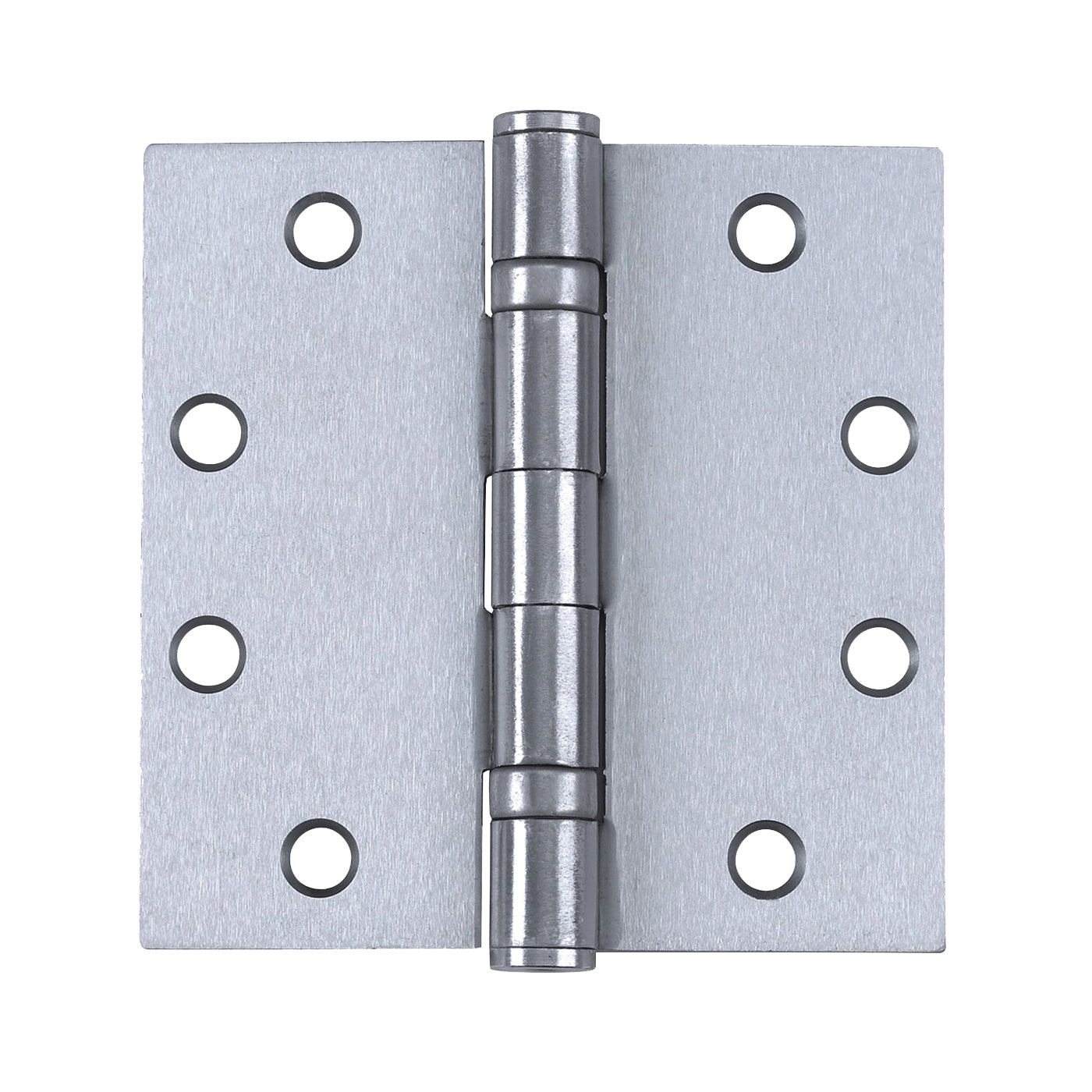 Two ball bearings. Non-rising removable pin with button tip and plug. For use on medium weight doors or doors requiring medium frequency service. Furnished with metal screws and 1/2 in wood screws. Complies with ANSI 156.1-2000.