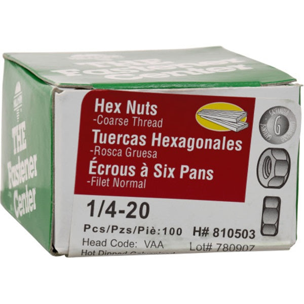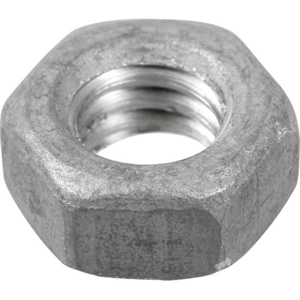 Hex nuts are to be used with machine bolts to adhere facing materials to prevent tension and shear movement. Specifically in wood-to-wood, wood-to-metal or metal-to-metal applications. Galvanized zinc grade 2 steel hex nuts are recommended for most general uses and are corrosion-resistant. Be sure to pre-drill any holes and to use washers and bolts that are a similar grade and finish.
