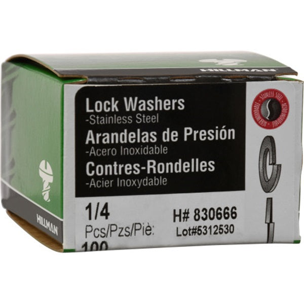 • Hillman 830666 Split Lock Washer, 1/4 in ID, Stainless Steel, 100 PK