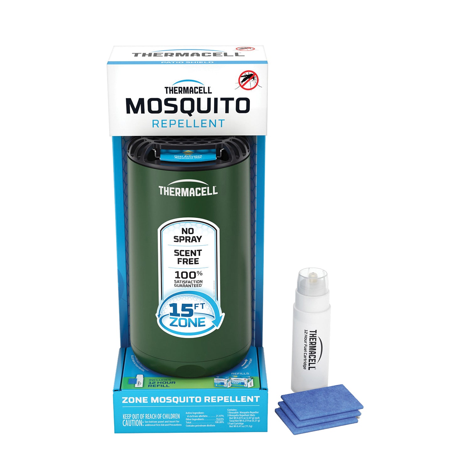 For the backyard and beyond, Thermacell Patio Shield is easy to use and provides hours of scent-free, mess-free defense against mosquitoes. With no batteries or cords needed, the Patio Shield is convenient, portable mosquito protection, ideal for entertaining, gardening, poolside, and more. Features a 15 ft zone of mosquito protection. Powered by a safe and compact 12 hr fuel cartridge. Mosquitoes are no small problem they can ruin a good time with painful bites, bothersome buzzing, and days of itching afterward. Until now, sprays, lotions, torches, DEET and citronella have been the only options for fighting mosquitoes. We started Thermacell because we wanted a better way to fight mosquitoes. From humble beginnings, our team of entomologists, researchers, and outdoor enthusiasts has over 100 years of combined experience fighting mosquitoes. Our mission at Thermacell is to change the way the world fights mosquitoes and we've been doing it for over 20 years. Headquartered outside Boston with distribution centers in Georgia, we're leading the way with better solutions to biting insects. With global distribution in 30+ countries and tens of millions of repellers sold, more and more people around the world count on Thermacell to make outdoor time even better.