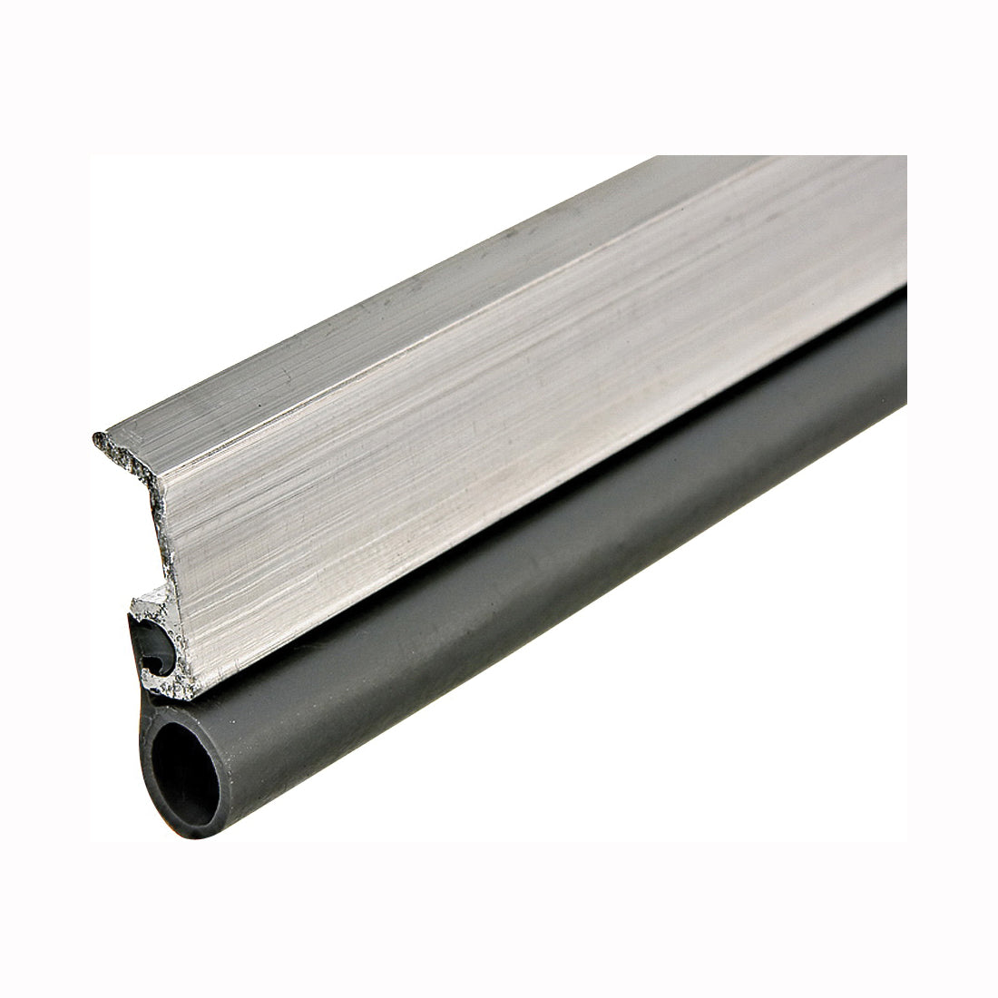 Durable extruded aluminum with a tubular vinyl strip. Nail-on or screw-on door set for 7 ft x 36 in doors. 3/4 in W.