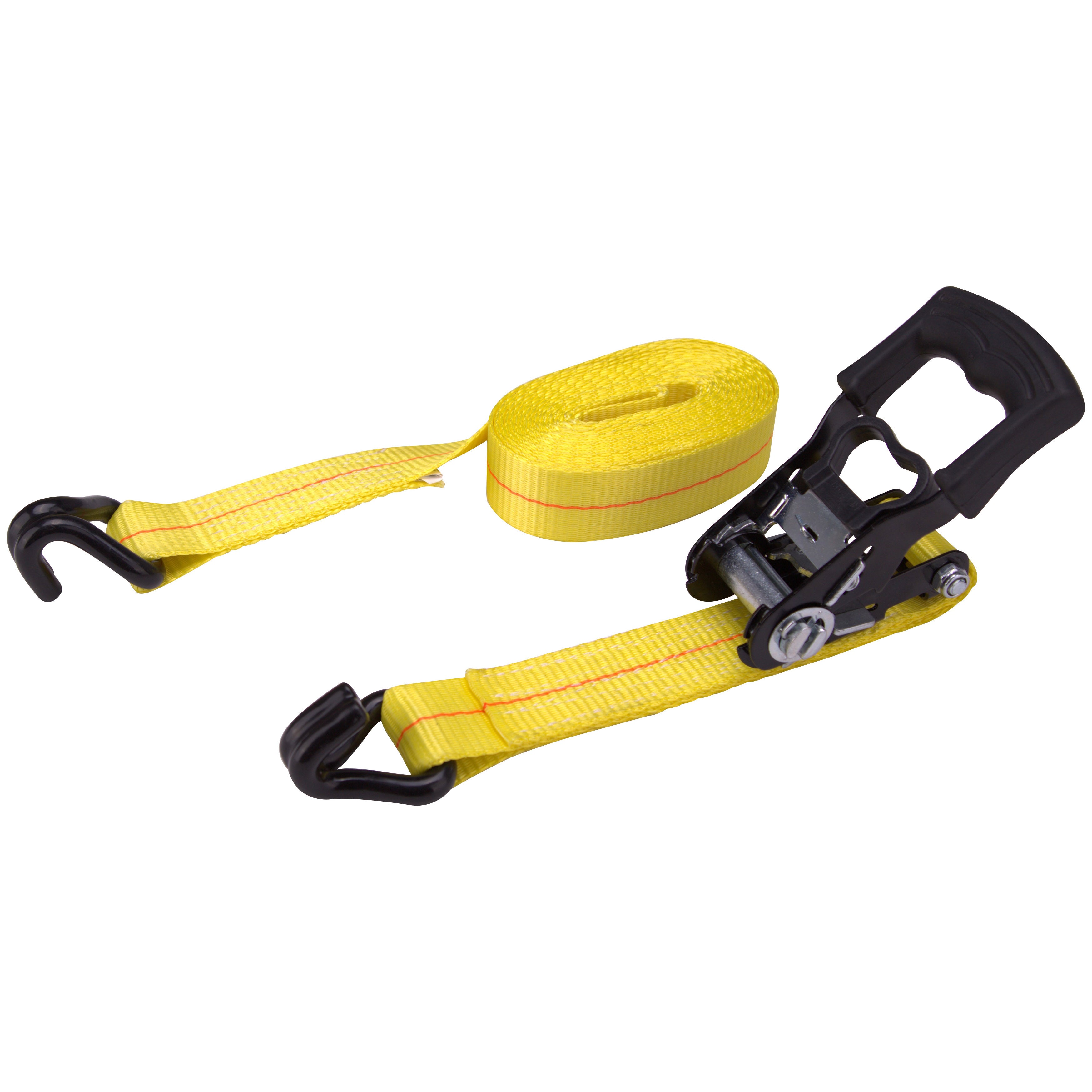 • ProSource FH64071 Tie-Down, 1-1/2 in W, 15 ft L, Polyester Webbing, Metal Ratchet, Yellow, 1666 lb, Steel End Fitting