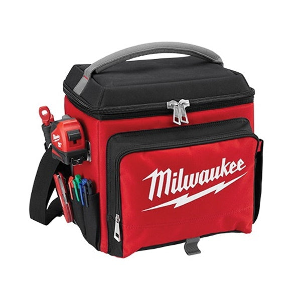 • Milwaukee 48-22-8250 Jobsite Cooler, 13.77 in W, 11.1 in D, 14.96 in H, 8-Pocket, Fabric, Red