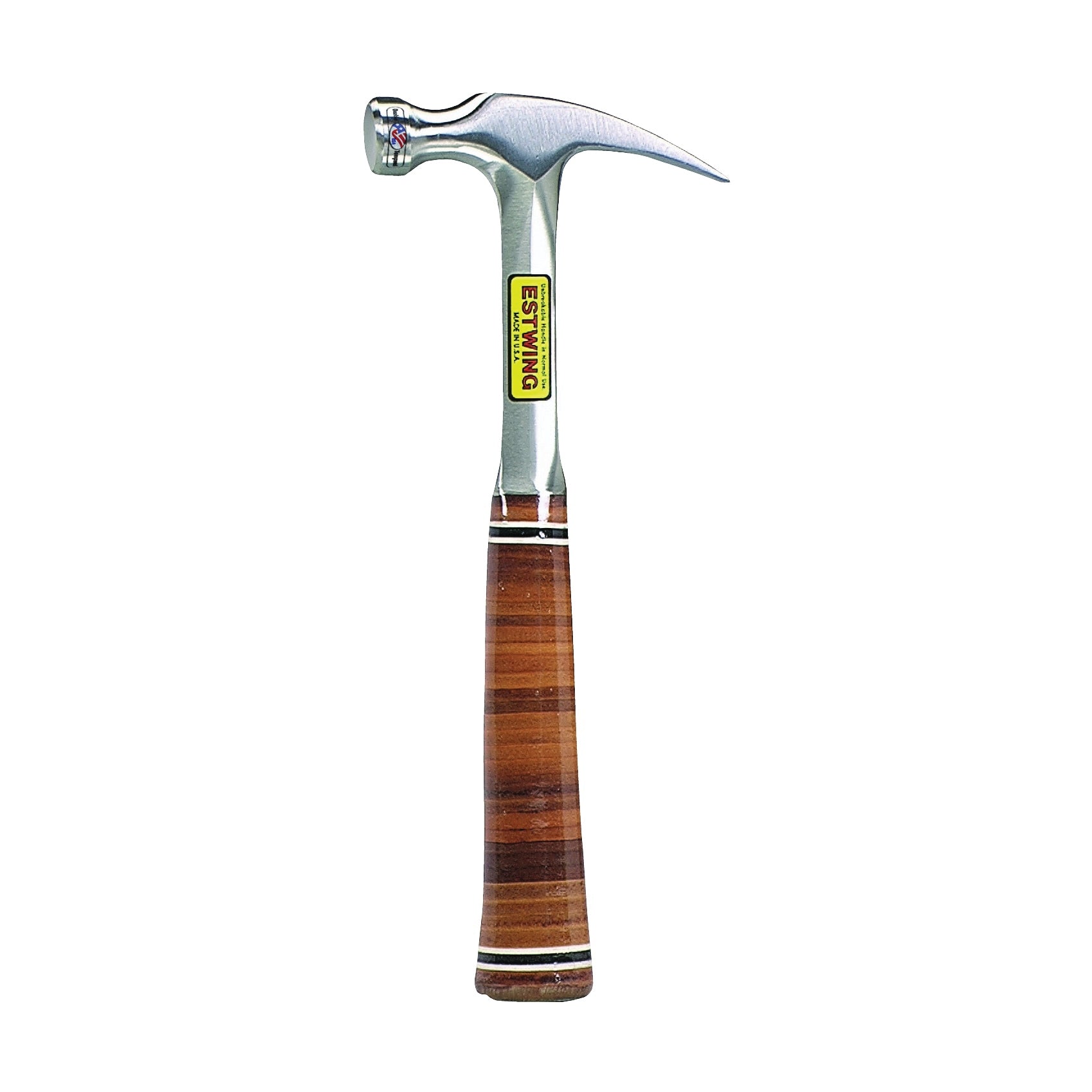 Fully polished, forged one-piece solid steel construction to eliminate loose heads. Laminated leather washers pressed on handle and riveted. Double-lacquered grip for finish.