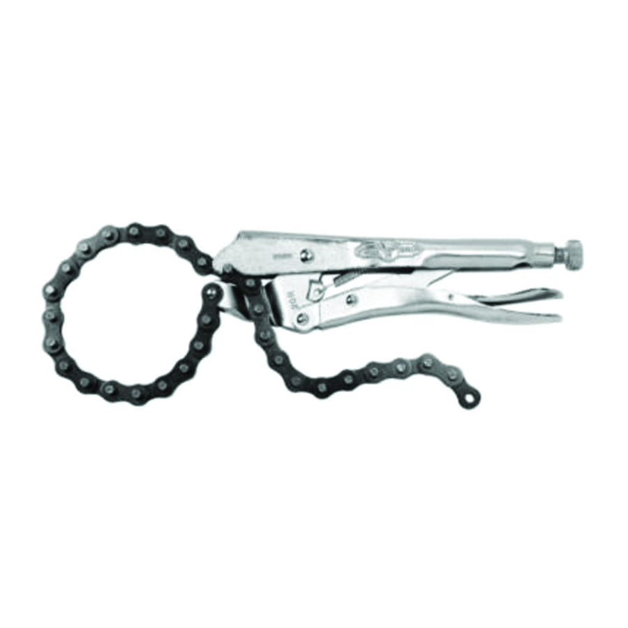 Made of high-grade, heat-treated alloy steel, with classic trigger release that provides maximum locking force. Turn screw to adjust pressure and fit work. Stays adjusted for repetitive use. Chain holds and locks around any shape or size. Use for awkward shape pieces.