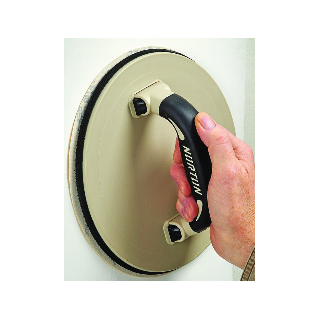 Ideal for sanding larger surface areas. The lightweight, circular design virtually eliminates flipping and allows change of direction up/down and left/right without lifting off the wall. Works with a 9 in hook-and-loop sanding disc.