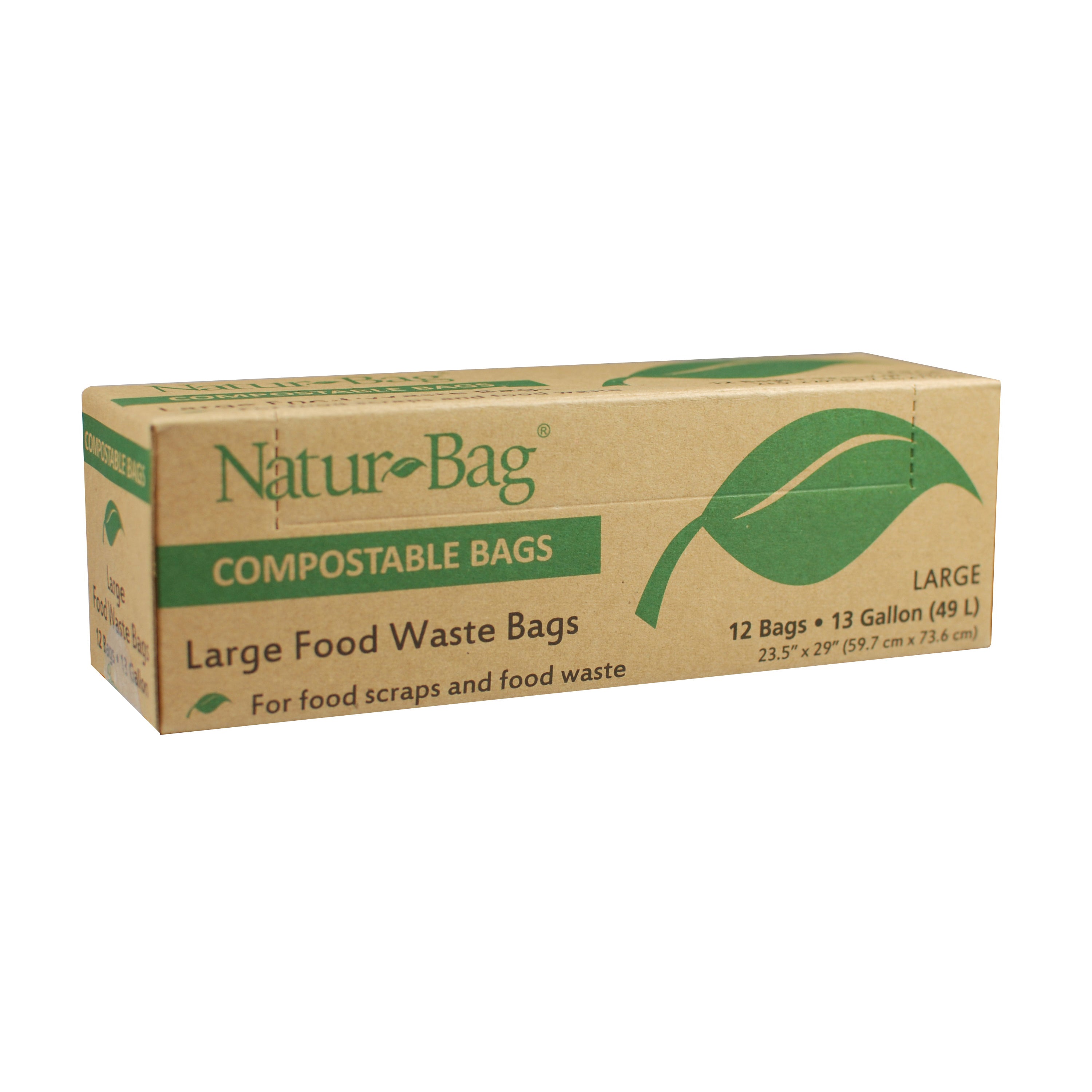 Natur-Bag® compostable bags and liners are used for the collection of food scraps and other organic waste for home, community and industry composting. Our products are 100% compostable and integrate seamlessly in zero-waste and organic diversion programs. We engineered Natur-Bag for superior strength and to breathe naturally, dissipating moisture to help control odors while keeping collection bins clean. Natur-Bag is available in a wide variety of sizes, from 3 gal bags for kitchen counter top pails up to 96 gal liners for large collection bins.