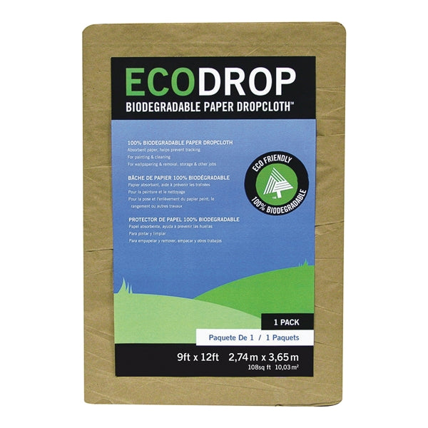 Trimaco's SuperTuff EcoDrop Drop cloth is made of heavy, absorbent Kraft paper that helps prevent tracking. They are economical and ideal for light paint work, plus it is made from 100% recycled material! Great for light painting and cleaning, wallpapering and removal, storage and other jobs. Measures 9 x 12 ft, ideal for large rooms or areas.