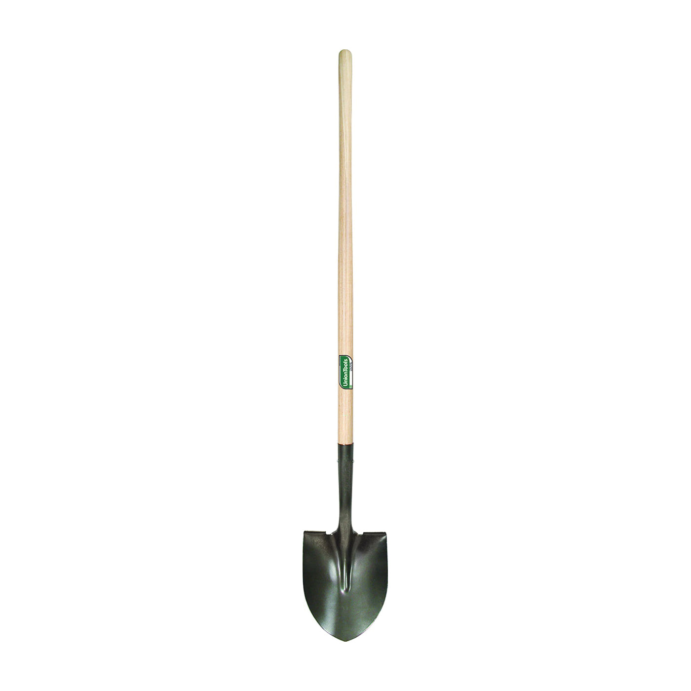 The Union Tools round point digging shovel is ideal for digging in sandy and light soils. It features a forward turned step that prevents material build-up. The open back blade with a 9 in socket fits the premium 48 in white hardwood handle for strength.