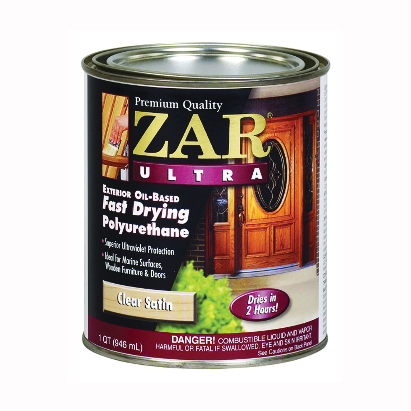 ZAR® ULTRA Exterior polyurethane is an incredibly fast drying, oil-based, clear wood polyurethane finish that dries in only 2 hrs. Formulated with UV radiation absorbers and antioxidants, it's specifically formulated to protect exterior surfaces that are subjected to direct sunlight. ZAR® ULTRA exterior polyurethane is ideal for wooden marine surfaces that are located above the waterline, exterior doors (fiberglass and steel), patio furniture, fences, gables and other wood surfaces exposed to extreme, harsh weather.