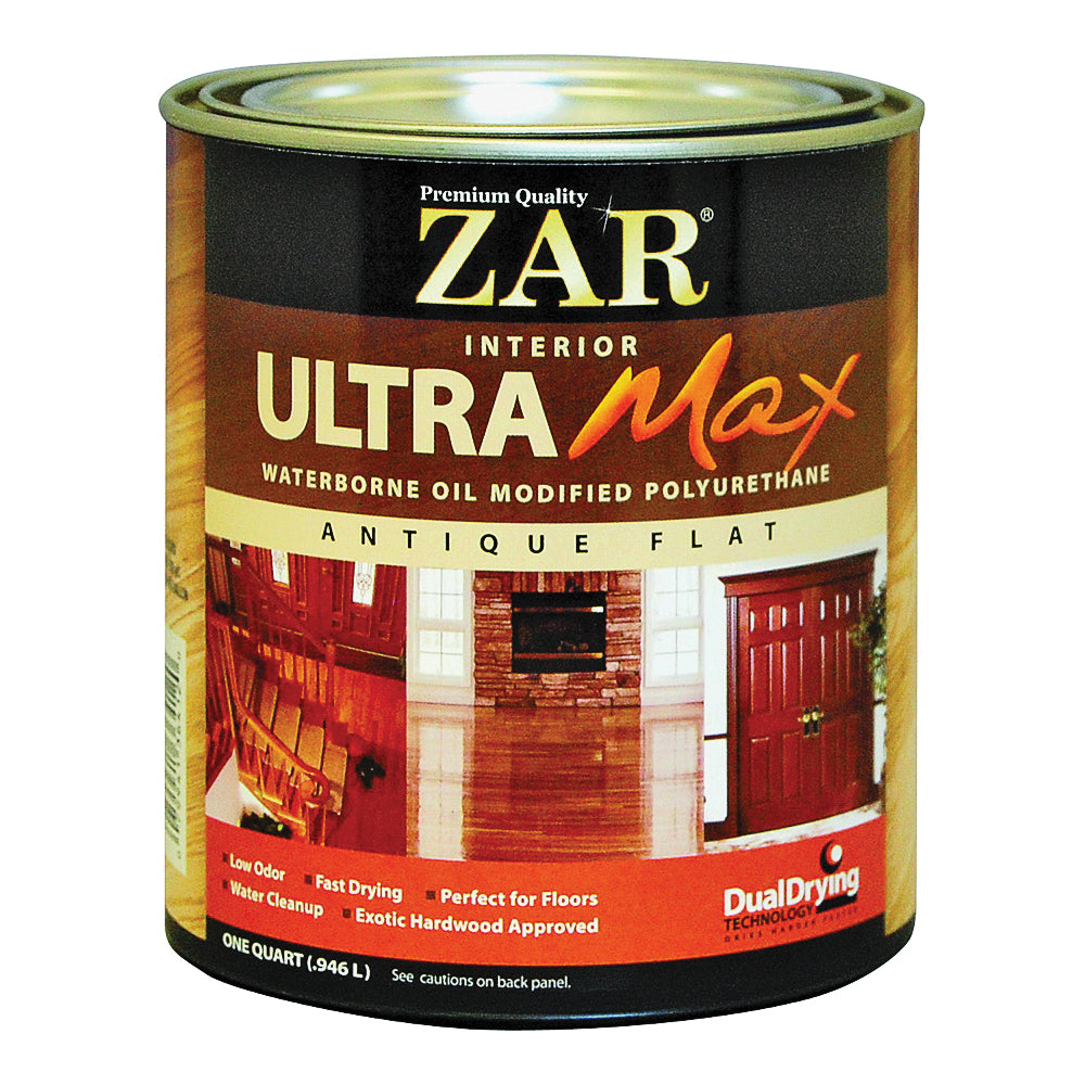 ZAR® ULTRA Max polyurethane features dual drying technology for a harder "through cure". Since you can recoat in just 2 hrs, it's the ideal choice for heavily used areas. Self-leveling properties make it ideal for creating smooth finishes on floors, cabinets, furniture and woodwork. The low odor formula offers excellent hardness and mar resistance and delivers outstanding wear and durability. ZAR® ULTRA Max polyurethane cleans up quickly and easily with soap and water. Environmentally safe, ZAR® ULTRA Max polyurethane is exotic hardwood approved and ideal for use on Teak, Brazilian Walnut and other similar wood species. Natural ambering enhances wood tones.
