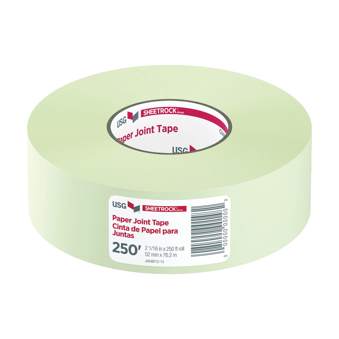 USG Sheetrock® Brand paper joint tape is a special fiber tape designed for use with USG joint compounds to reinforce joints and corners in gypsum drywall interiors. Also recommended for joint treatment in veneer finish systems subject to rapid drying conditions and where framing exceeds 16 in spacing. USG Sheetrock® Brand paper joint tape resists cracking and stretching and is lightly sanded for increased bond. USG Sheetrock® Brand paper joint tape is manufactured from special cross-fibered tape with high tensile strength, both with and across the paper grain. Its high porosity produces a great bond while eliminating the need for perforations. It also provides exceptional wet strength, resists stretching, wrinkling and other distortions, lies flat and resists tearing under tools. Easy-to-apply, the positive center creasing and uniform winding promote accurate and trouble-free application to angles as well as flat joints.