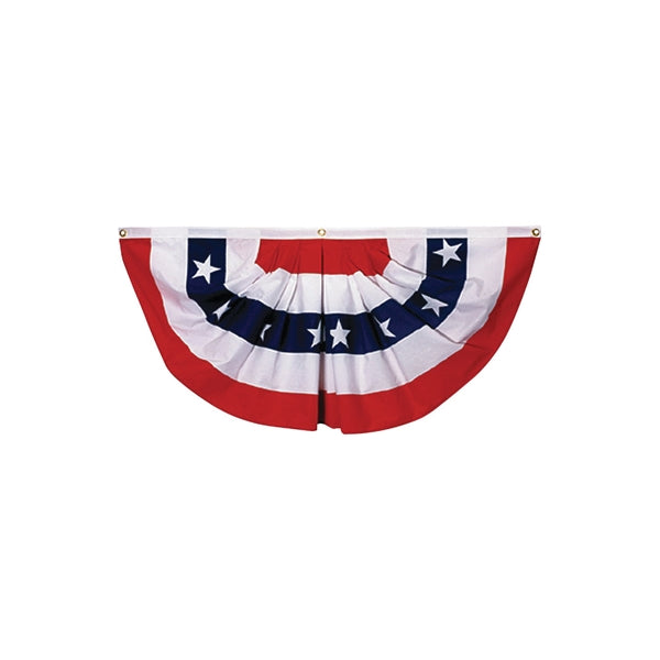 This 1-1/2 in x 3 ft printed, polycotton mini-fan flag has five stripes with stars. This pleated mini-fan comes with brass grommets and is ready for hanging.