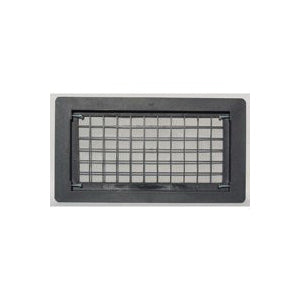 Grill with a flange and (4) screws to hold it in the foundation opening, has no flap or slide mechanism to open or close it, so the air can constantly move through. Size of 7-3/4 in x 15-1/4 in so it easily fits the standard 8 in x 16 in block foundation opening.