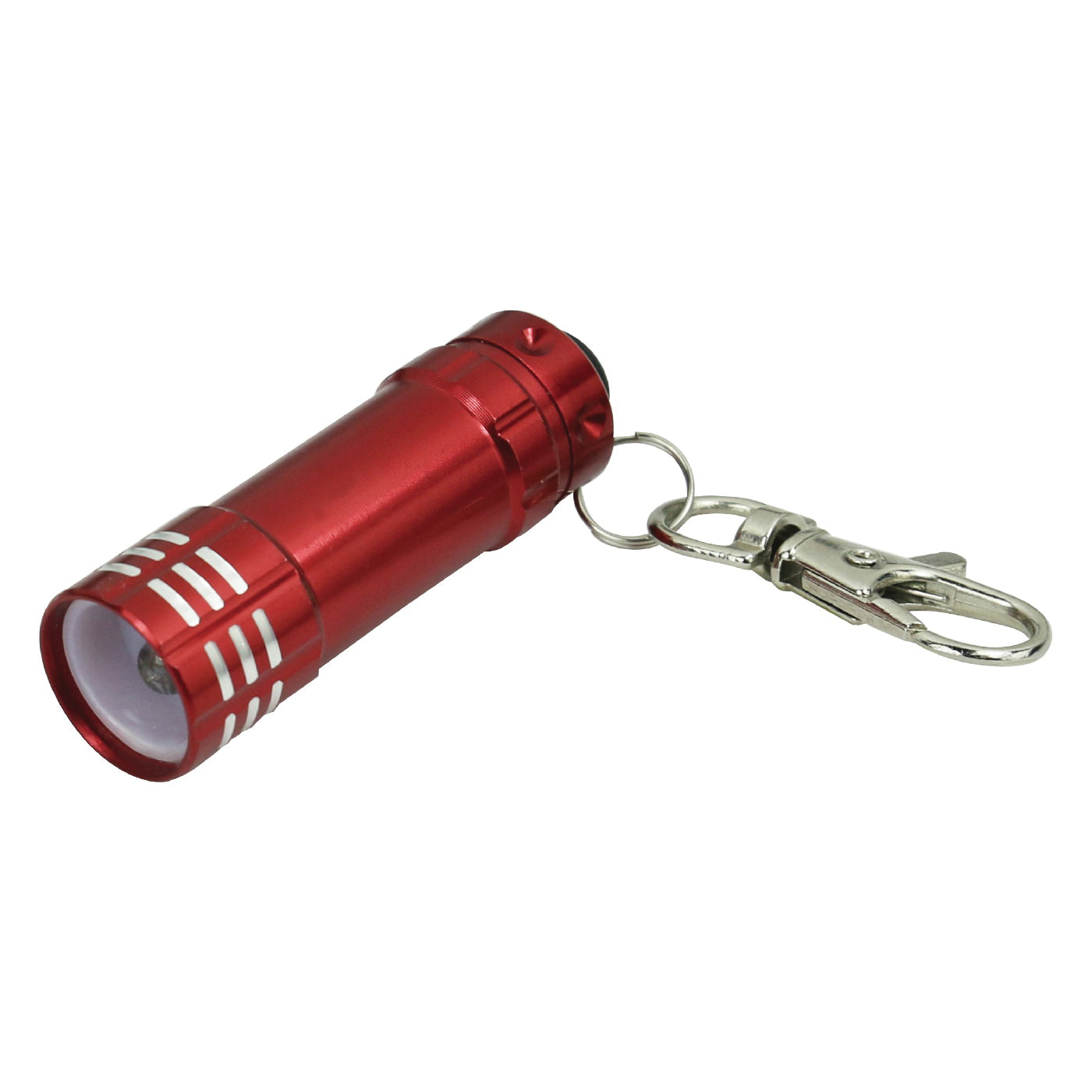 The Vulcan LED flashlight key chain is made of aluminum. The snap key ring is included.
