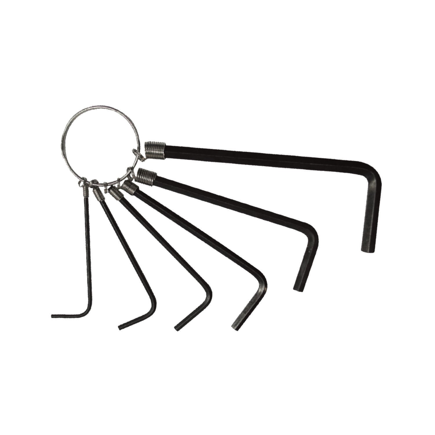 Hex key set with SAE measurements. Includes key ring and 6 hex keys.