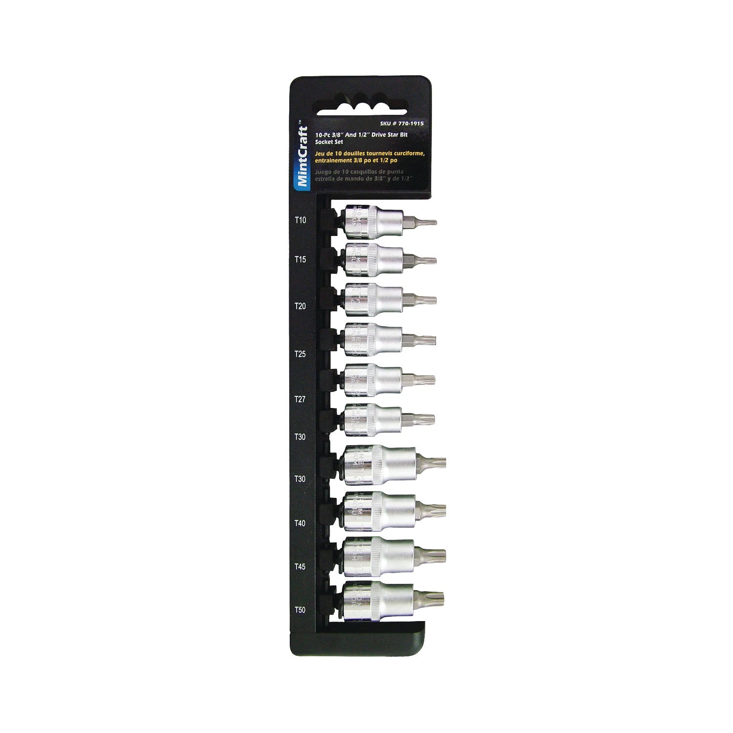 | Includes | 6 PCS: 3/8 in Drive: T10, T15, T20, T25, T27, T30 and 4 PCS: 1/2 in Drive: T30, T40, T45, T50 |