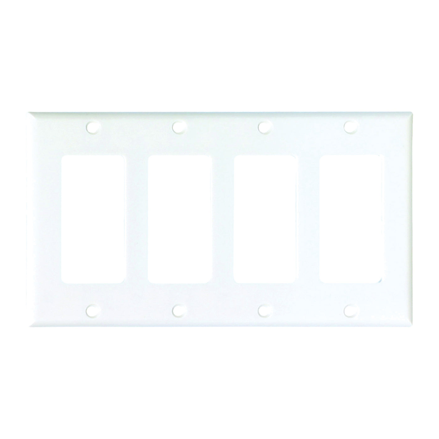 Molded from non-flammable thermoset. Flush fitting, warp-resistant design. Screw-catch feature holds mounting screws captive and simplifies installation. Matching screws provided. High gloss finish is soil resistant. Standard size - 4.50 x 8.188 in, boxed.