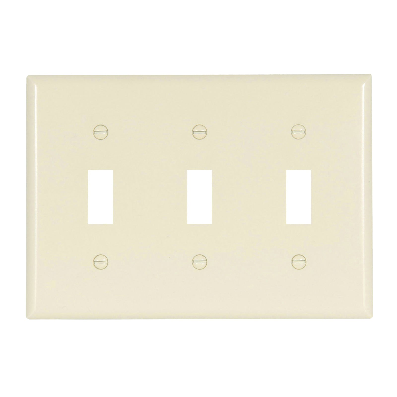 Molded from non-flammable thermoset. Flush fitting, warp-resistant design. Screw-catch feature holds mounting screws captive and simplifies installation. Matching screws provided. High gloss finish is soil resistant. Standard size - 4.50 x 6.375 in, boxed.