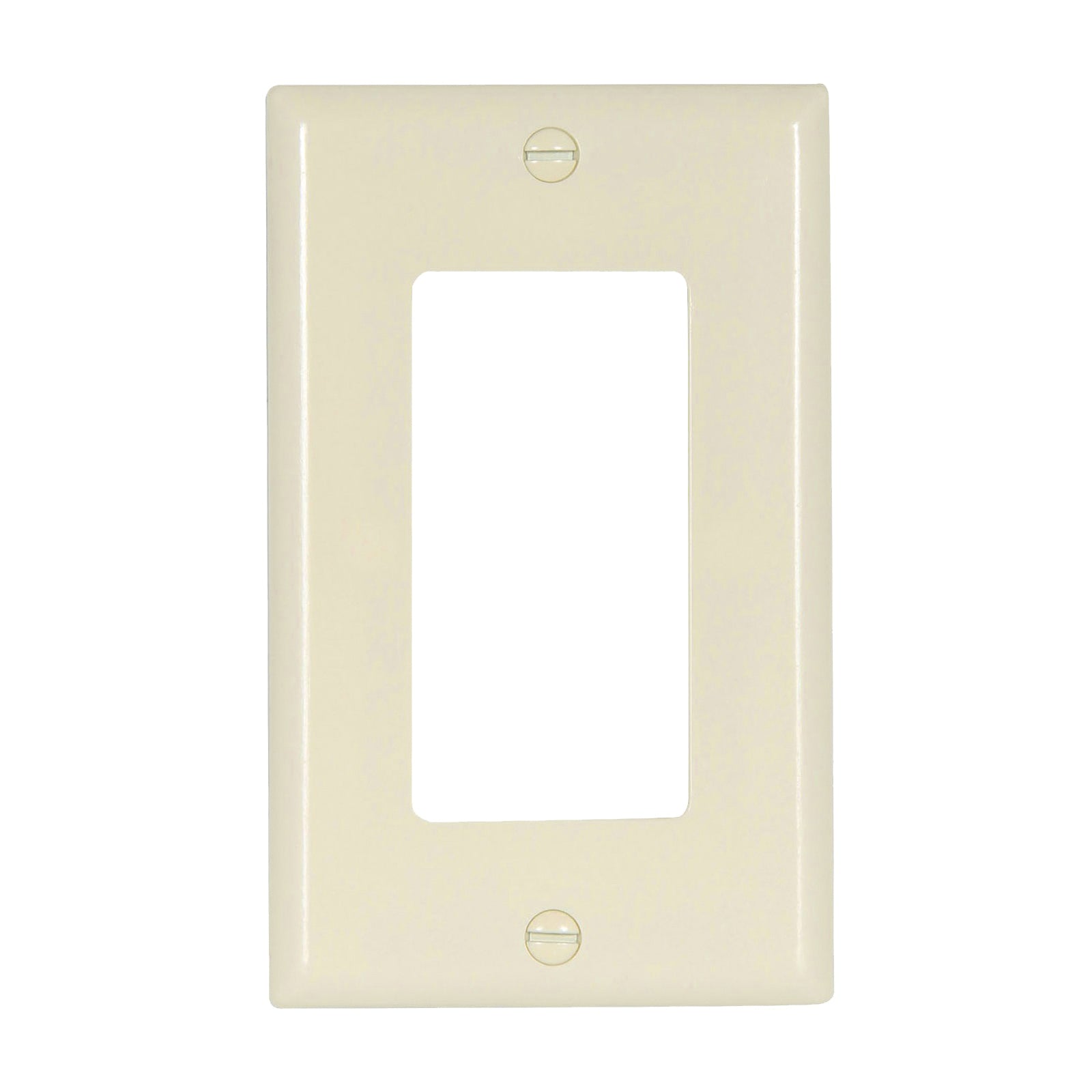 Molded from non-flammable thermoset. Flush fitting, warp-resistant design. Matching screws provided. High gloss finish is soil-resistant. Standard size of 2-3/4 in x 4-1/2 in, boxed.