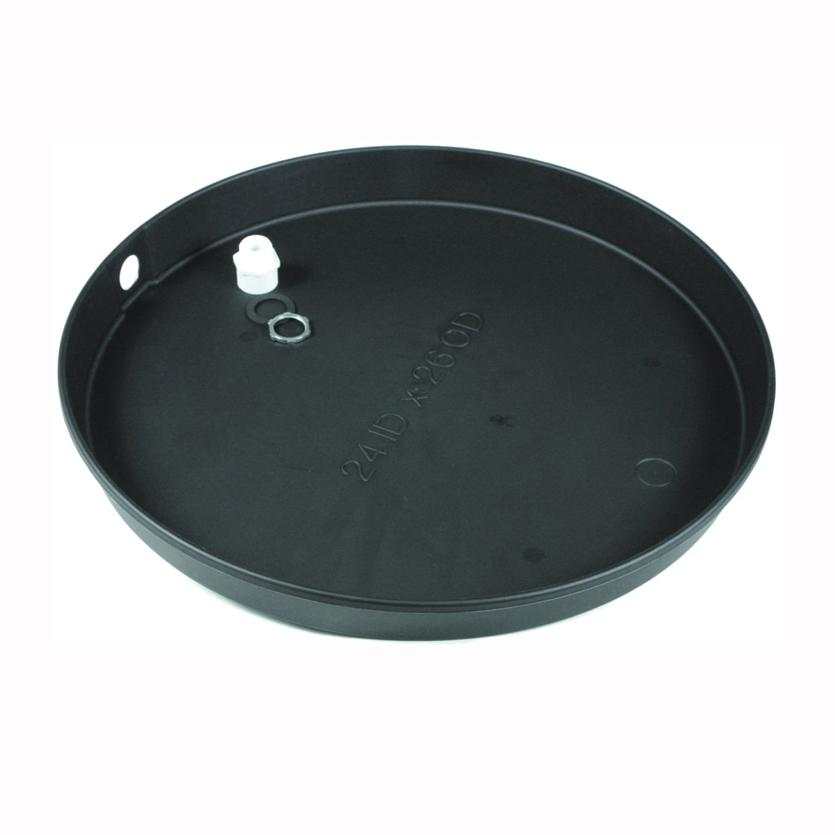 For electric water heaters only. Heavy-duty polypropylene. Dual size 1 to 1-1/2 in PVC drain fitting with gaskets included. Sides are 2-1/2 in deep. Pre-cut side opening for drain fitting.