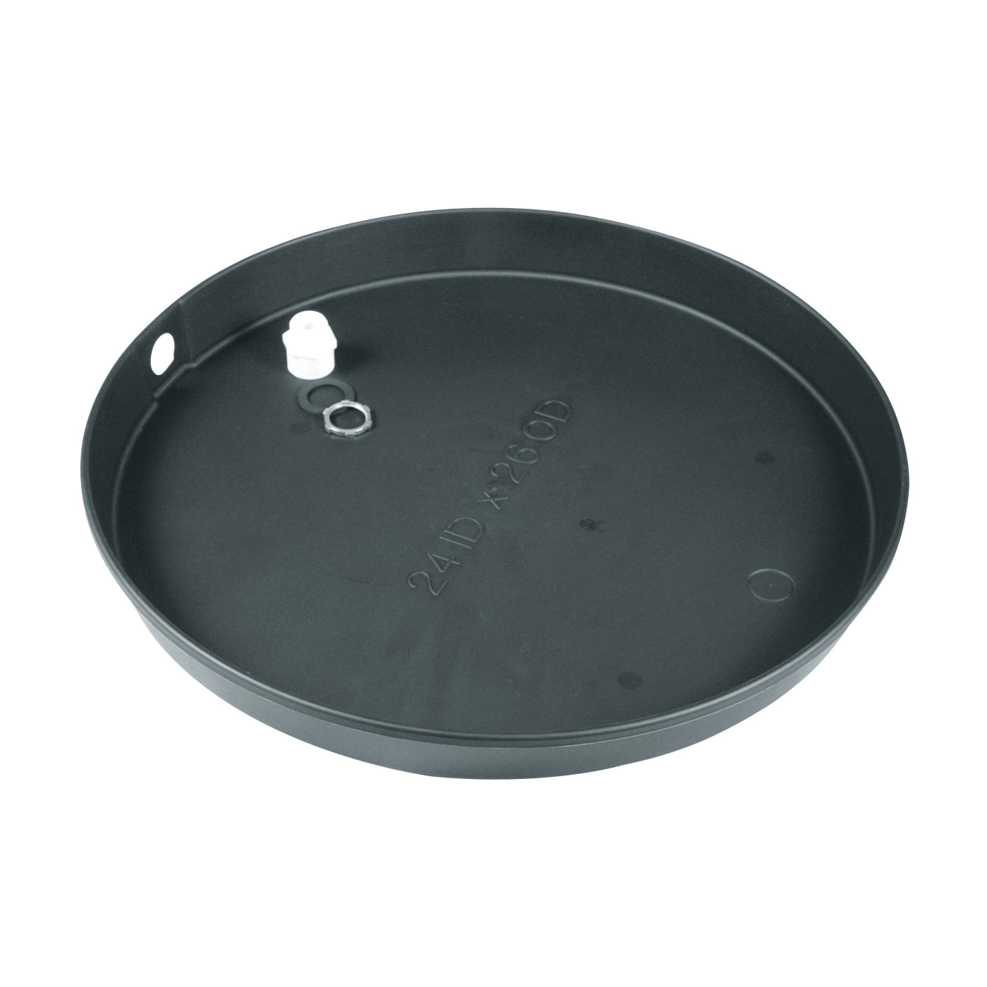For electric water heaters only. Heavy-duty polypropylene. Dual size 1 to 1-1/2 in PVC drain fitting with gaskets included. Sides are 2-1/2 in deep. Pre-cut side opening for drain fitting.