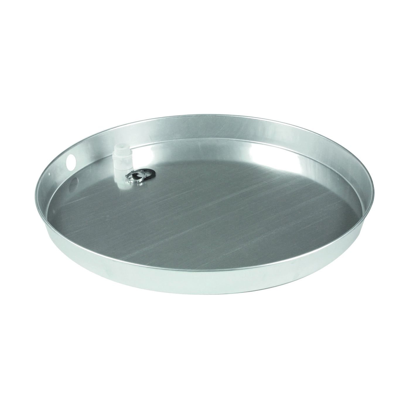 For gas or electric water heaters. Dual size 1 to 1-1/2 in PVC drain fitting with gaskets included. Sides are 2-1/2 in deep. Pre-cut side opening for drain fitting.