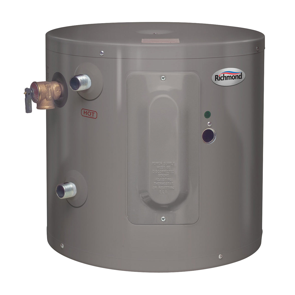 The Richmond® Essential® 6-gal Electric point-of-use Water Heater comes with a 2 years In Home Labor Warranty and has a compact design that can provide an adequate supply of hot water for a single application. The heater includes a 2,000-Watt element and a factory installed temperature and pressure relief valve. The heater can be mounted on a wall for convenient installation.