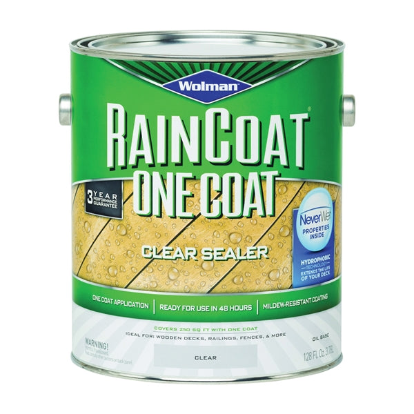 Wolman RainCoat® clear water repellent (oil-based) is a premium performance, 100% clear, oil-based water repellent designed to protect wood against water damage and resist mildew. RainCoat® clear water repellent is colorless and imparts a clear, oiled look, allowing the woods original color to show through and gray naturally from UV exposure. RainCoat® is fortified with a mildewcide that resists mildew growth on the coating film. It works to prevent water penetration to minimize wood cracking and checking and to prevent major damage such as splitting and warping. RainCoat® exceeds Federal requirements for water repellency and is recommended for immediate application to the new generation of pressure treated lumber products.
