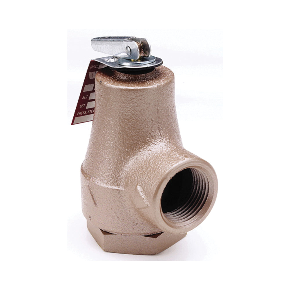 Series 374A boiler pressure relief valves are used in hot water boiler applications to protect against excessive pressure on all types of hot water heating boiler equipment. They have an iron body construction with forged bronze inlet connections, non-metallic disc-to-metal seating, stainless steel spring and test lever. Series 374A resists corrosive water conditions, sticking and freezing and prevents water and sediment from being trapped in the seat. It is designed for emergency safety relief and shall not be used as an operating control. Standard pressure setting 30 psi. Pressure range rated up to 550,000 Btu/hr at a 30 psi setting only.