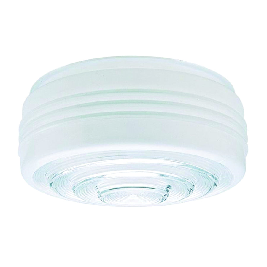Add a touch of vintage presence to your interior lighting with this white and clear drum shade. The shade features horizontal grooves on a compact white glass drum body for detail. The clear glass bottom is distinguished by raised concentric circles that add depth and visual interest to the design.